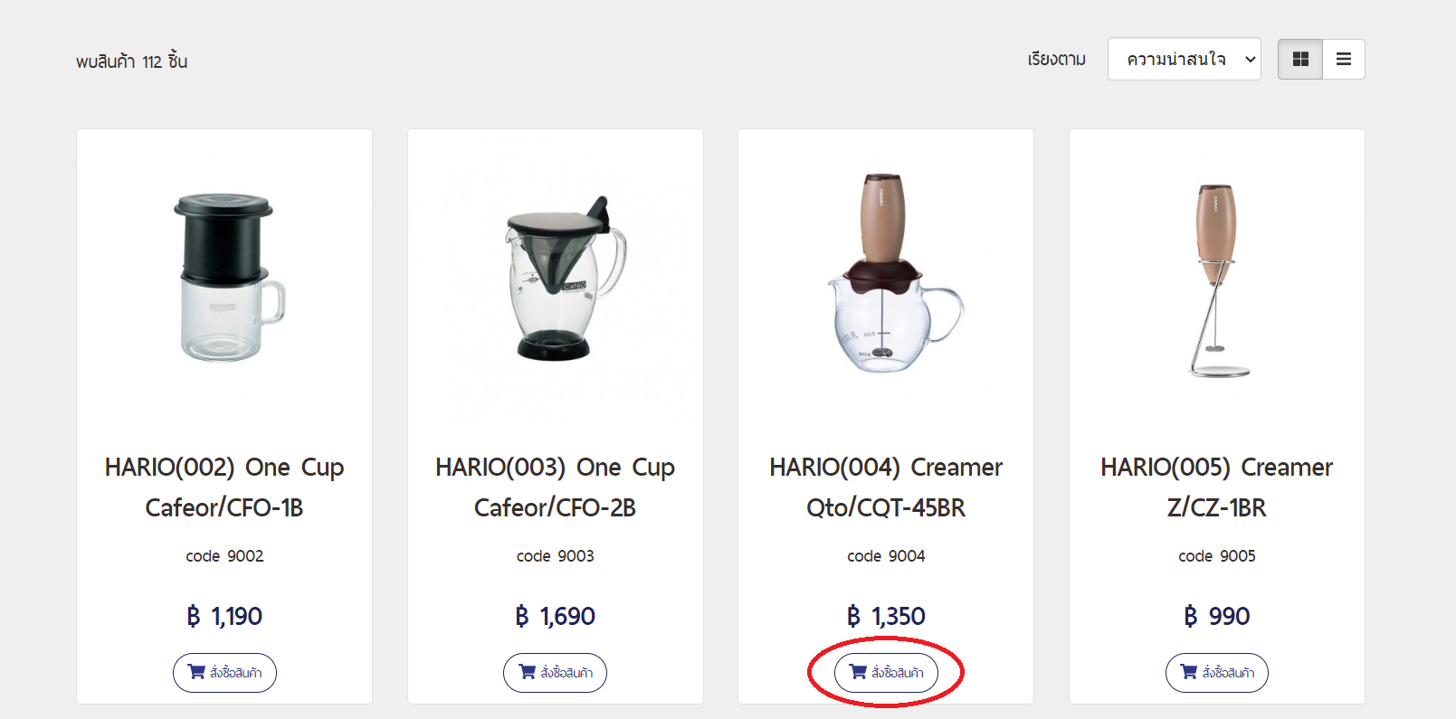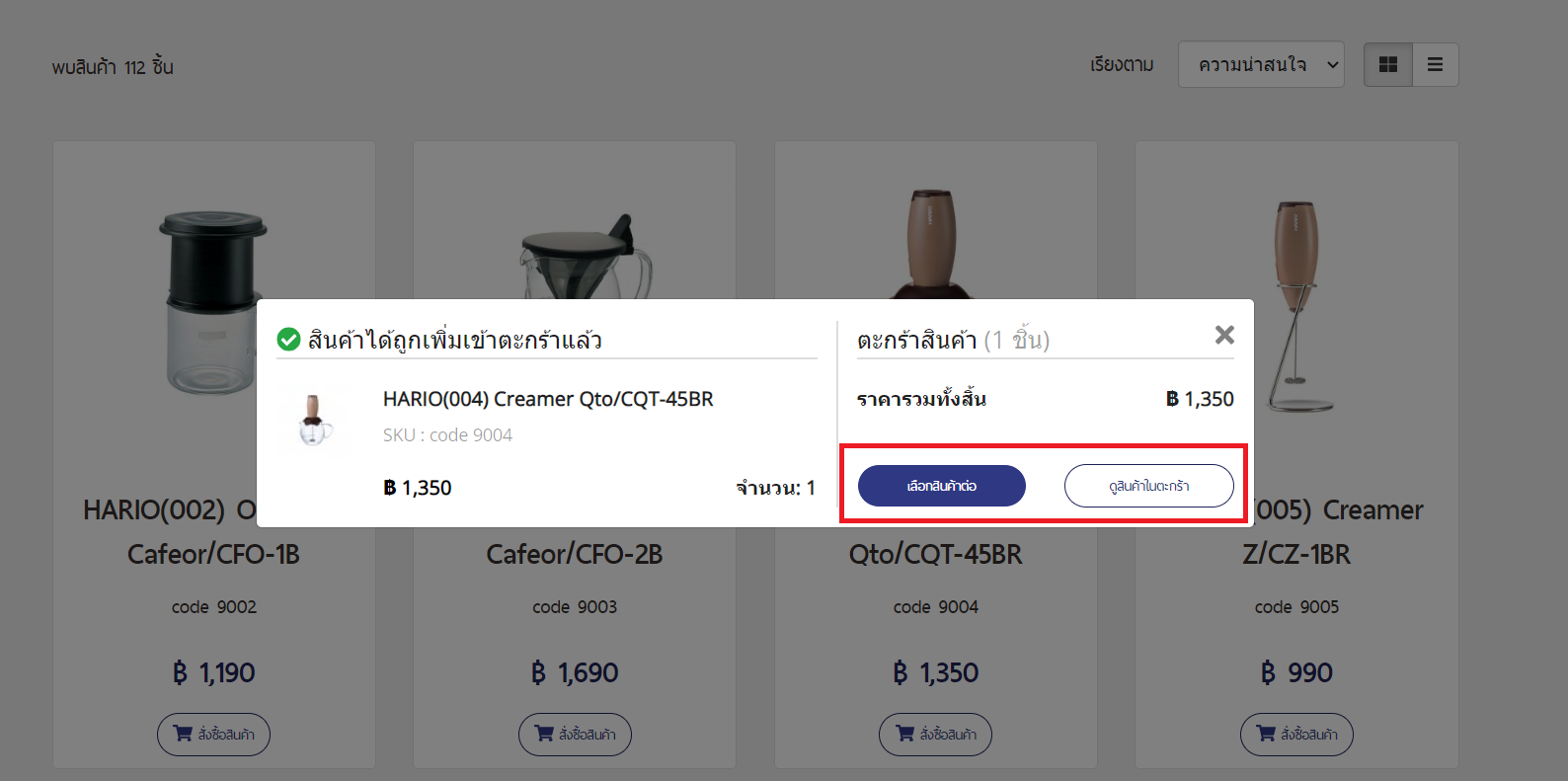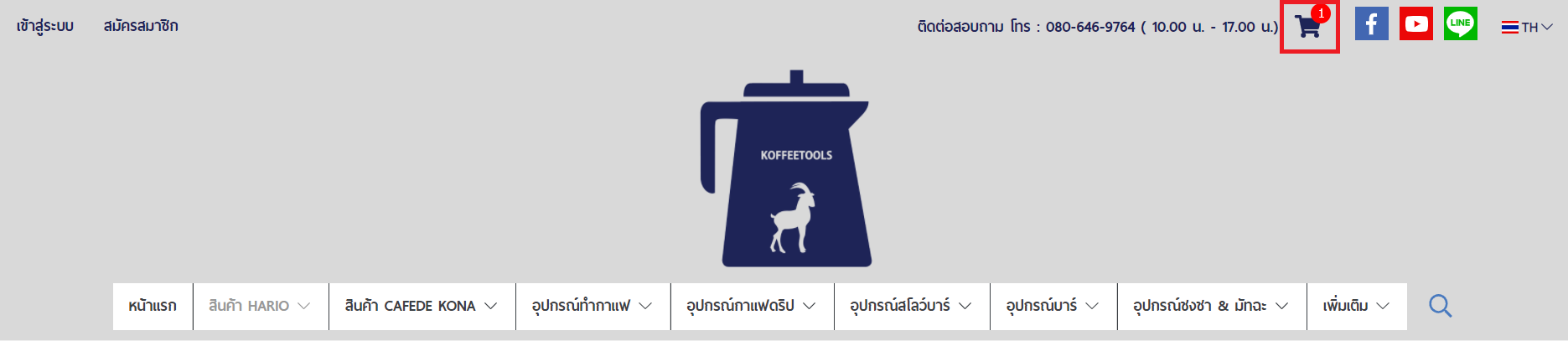 2. กรณีต้องการสั่งสินค้าเพิ่มกด "ซื้อสินค้าต่อ" หรือ เมื่อต้องการสินค้าครบแล้วให้กด "สั่งซื้อสินค้า" สามารถกดกลับมาหน้านี้ได้ทุกเมื่อ โดยการกดรูปรถเข็นที่มุมขวาบน